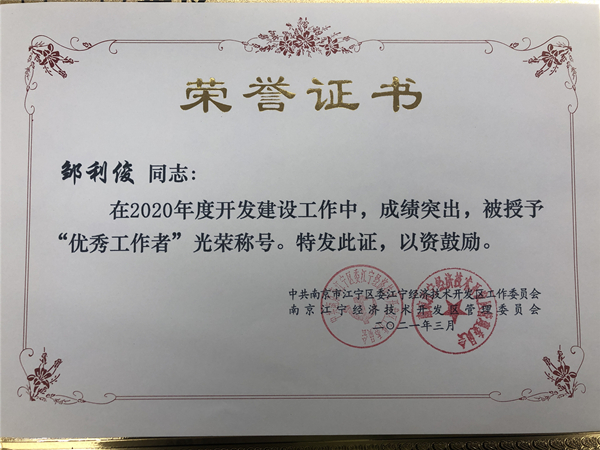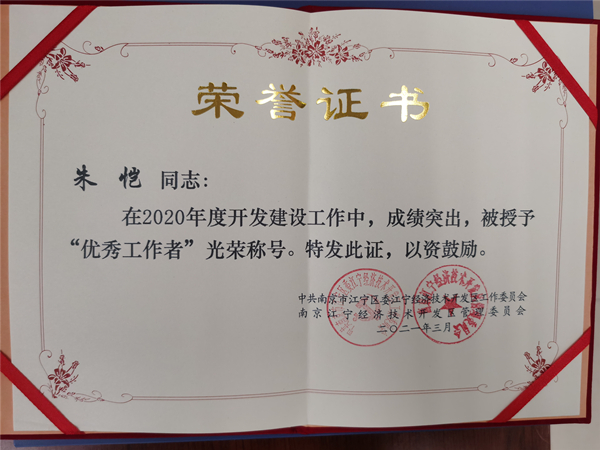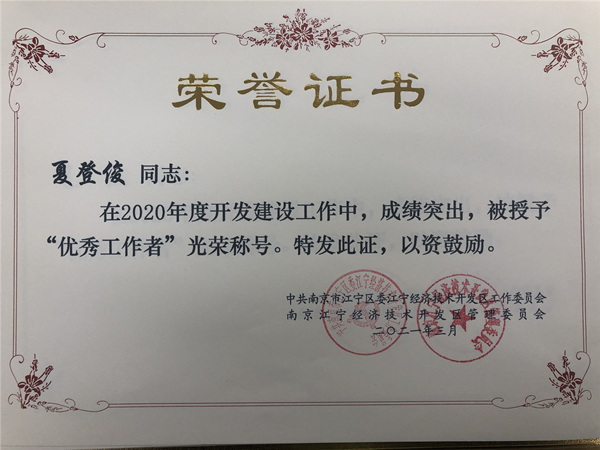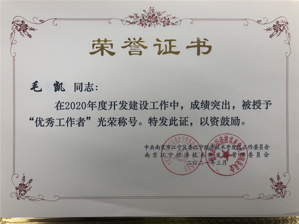 江宁开发区检察院王飞、朱恺、毛凯、邹利俊和夏登俊五名检察干警荣获2020年度“优秀工作者”荣誉称号。
