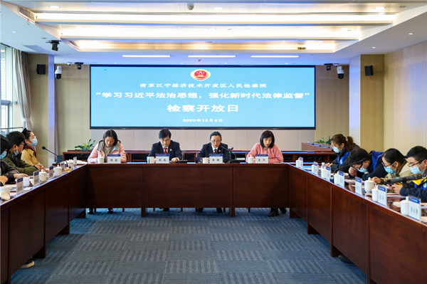 “宪法是国家的根本法,是治国安邦的总章程。”正值第七个国家宪法日,江宁开发区检察院邀请辖区内秣陵街道、禄口街道的社区网格员“做客”检察机关,开展以“学习习近平法治思想,强化新时代法律监督”为主题的检察开放日活动,让宪法学习网格化,呼吁社区网格员作为一线普法“宣传员”,将法治思想传递到网格内的家家户户。江宁开发区检察院分党组成员、副检察长胡俊,分党组成员、政治部主任陈琳参加活动。